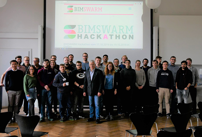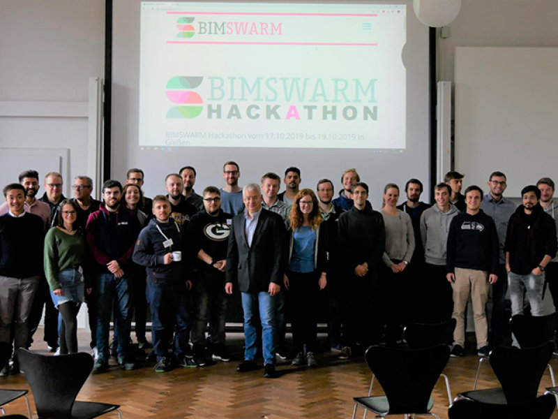 Im Rahmen des Forschungsprojektes BIMSWARM entwickelt der Lehrstuhl für Informatik im Bauwesen mit verschiedenen Projektpartnern eine Plattform für die Verflechtung von bauspezifischen Anwendungen, Diensten und Inhalten in Prozessketten. Vom 17.10. bis zum 19.10.2019 wurde der Prototyp beim BIMSWARM Hackathon erstmals getestet.