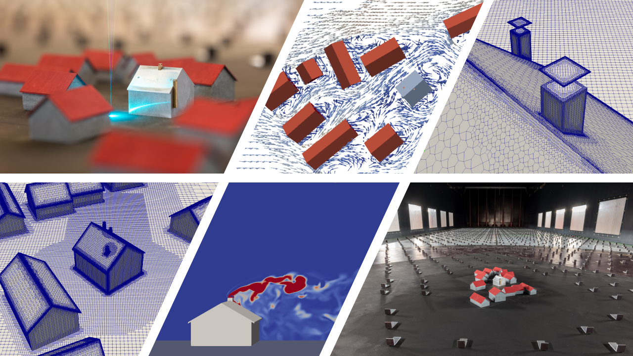 To this end, model experiments are being conducted to quantitatively investigate how exhaust discharge conditions affect immission levels around solid-fuel heating systems in residential neighborhoods. These experiments follow an integrated methodology, combining physical modeling in a qualified boundary-layer wind tunnel with extensive numerical simulations using computational fluid dynamics (CFD).