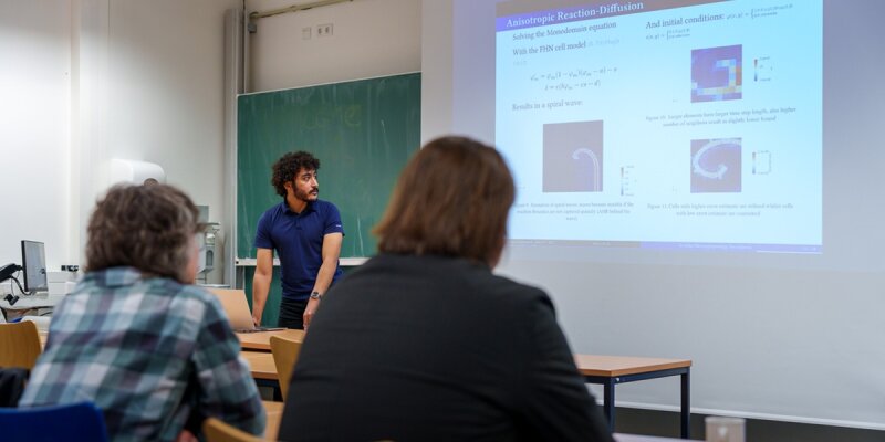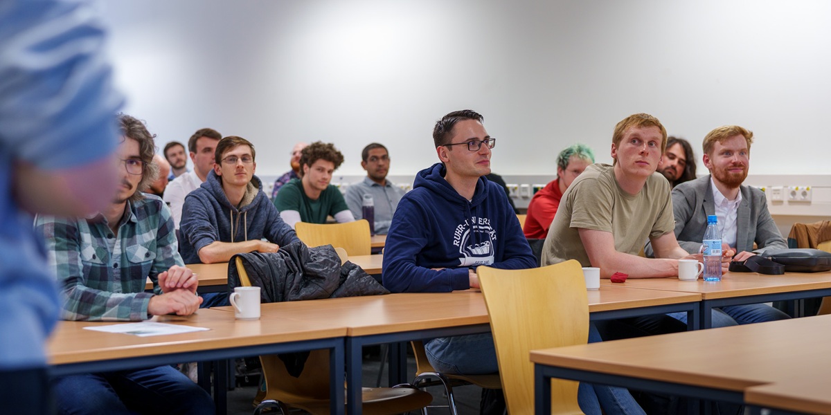 On October 10, the GAMM Student Chapter Science Slam took place at the RUB. The event was organized by the Chairs of Mechanics – Materials Theory and Continuum Mechanics together with the GAMM junior research groups from Hamburg, Hanover, and Braunschweig. For the first time, young researchers from Duisburg-Essen also took part. A total of 35 participants, including master's students, doctoral candidates, and postdocs, took part.